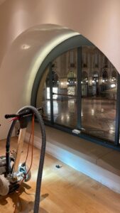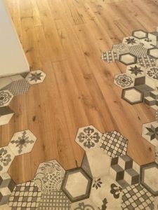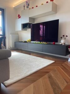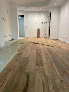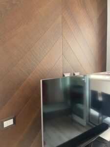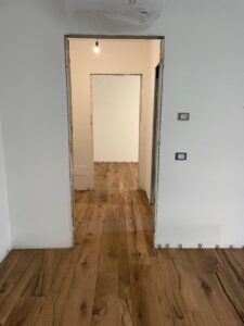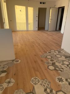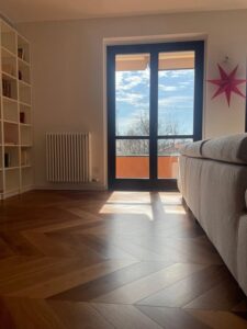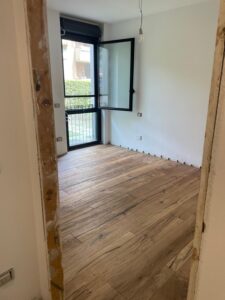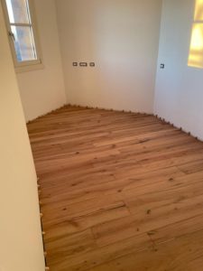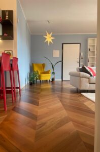 Verifica dell’umidità del sottofondo in cemento, studio sulla geometria di posa parquet, scelta del trattamento finale dopo la lamatura parquet.